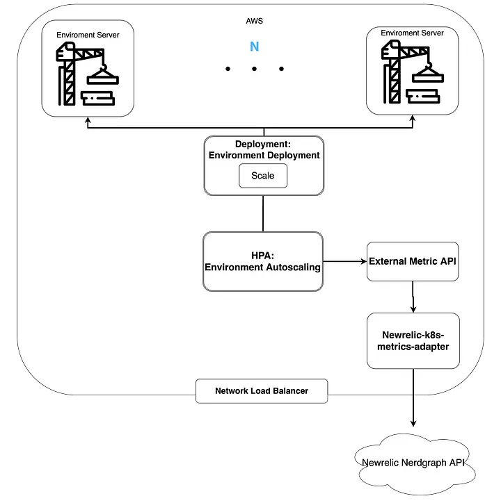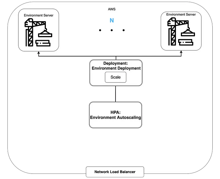 Service discovery and load balancing can also be easily implemented. Environment servers can be exposed externally to allow agent models to access them, and the load on environment servers is distributed using AWS Network Load Balancer.