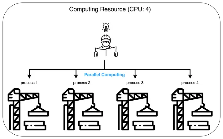 The existing method uses the environment as a Python package. This means that the agent and environment operate on the same computing resources. For environment computations, each operation can be performed independently. Since we typically use computing resources with multiple cores, we process environment operations in parallel according to the number of available cores.