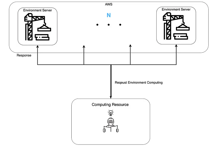 When environment computations are done in server form, there is no limit to the number of simultaneous environment operations that can be processed. Compared to the previous method, the environment server approach can process environment operations simultaneously up to the number of environment servers currently in operation. Additionally, since we use AWS resources, there are no specific limitations on the number of environment servers.