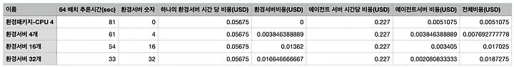 - AWS cost calculation = (hourly agent server cost + hourly environment server cost * number of servers used) * usage time(seconds) / 3600